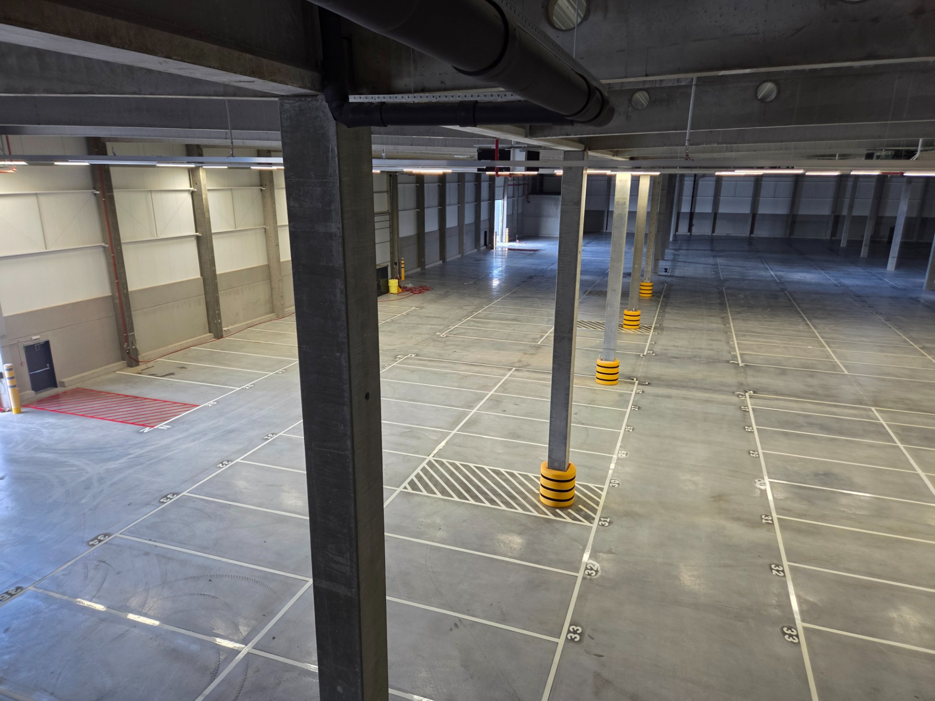 De belijning wordt uitgevoerd met hoogwaardige 2-componenten PU-verf, speciaal ontwikkeld voor industriële vloeren. Deze verf is slijtvast, chemisch resistent en bestand tegen intens heftruck- en transpalletverkeer.